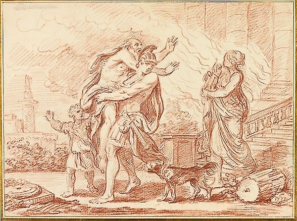 Enea, che in precedenza aveva data per scontata la presenza della moglie (“Segua discosta il nostro andar Creusa”), ora la cerca affannosamente. Anche se, in realtà, egli non è altro che un burattino guidato dalle abili mani degli Dei e, in quanto tale, non può volere. Il suo desiderio di ritrovare la moglie non è altro che un tentativo vano di indulgenza, come s’egli cercasse un modo per giustificare il precedente errore di valutazione; e perfino la morte di Creusa viene descritta come un evento già precedentemente architettato dalle divinità.